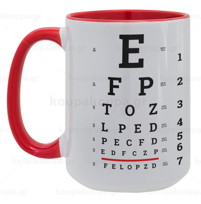 EYE test chart, Κούπα Mega 15oz, κεραμική Κόκκινη, 450ml