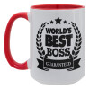 World's best boss stars, Κούπα Mega 15oz, κεραμική Κόκκινη, 450ml