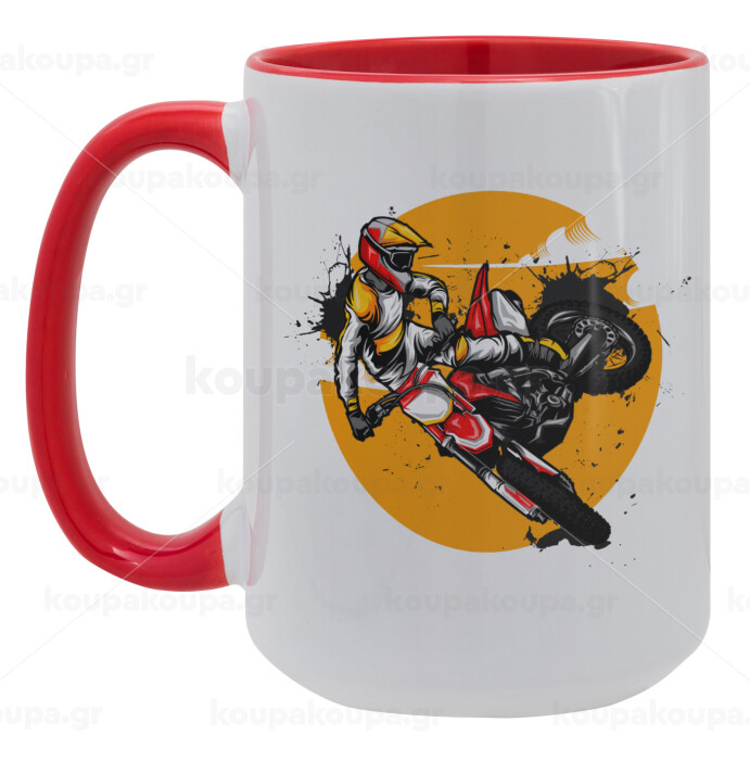 Motocross, Κούπα Mega 15oz, κεραμική Κόκκινη, 450ml