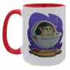 Baby Yoda mandalorian, Κούπα Mega 15oz, κεραμική Κόκκινη, 450ml