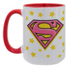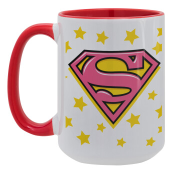 Superman Pink, Κούπα Mega 15oz, κεραμική Κόκκινη, 450ml