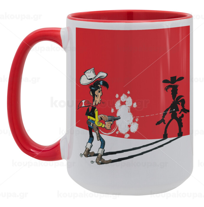 Lucky Luke shadows, Κούπα Mega 15oz, κεραμική Κόκκινη, 450ml