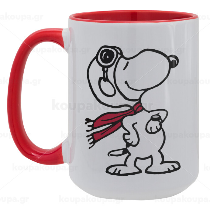 Snoopy ο πιλότος, Κούπα Mega 15oz, κεραμική Κόκκινη, 450ml