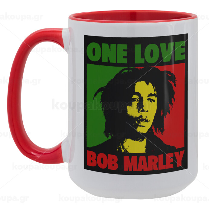 Bob marley, one love, Κούπα Mega 15oz, κεραμική Κόκκινη, 450ml