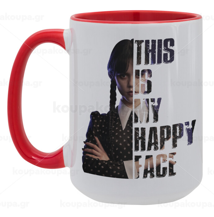 Wednesday, This is my happy face, Κούπα Mega 15oz, κεραμική Κόκκινη, 450ml