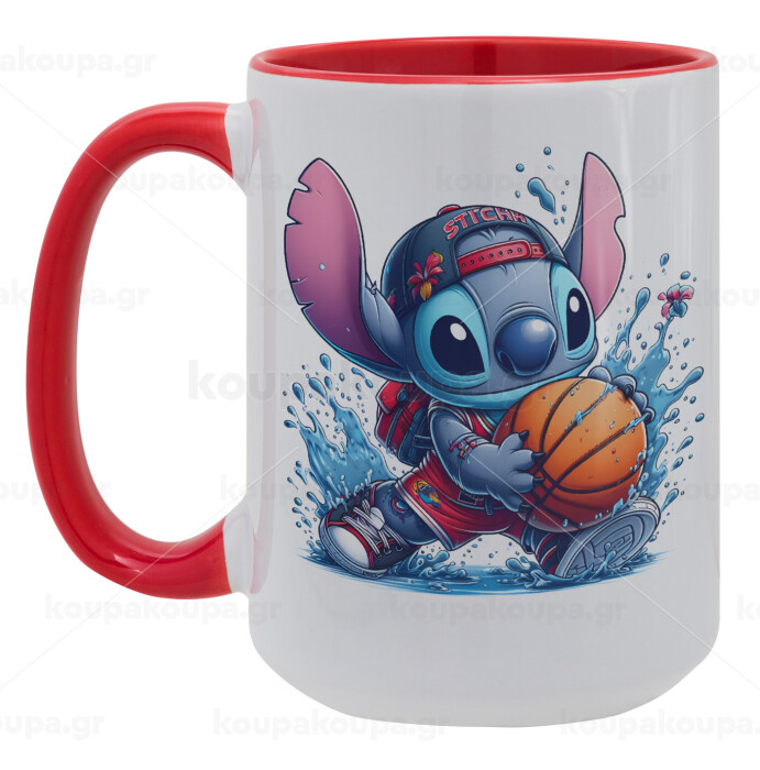 Stitch Basketball, Κούπα Mega 15oz, κεραμική Κόκκινη, 450ml