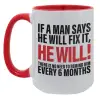 If a man says he will fix it He will There is no need to remind him every 6 months, Κούπα Mega 15oz, κεραμική Κόκκινη, 450ml