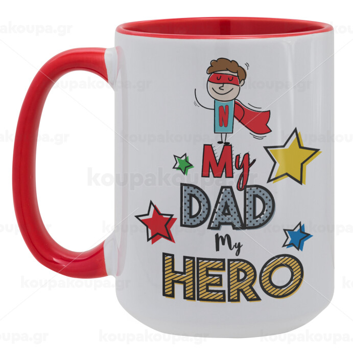 My Dad, my Hero!!!, Κούπα Mega 15oz, κεραμική Κόκκινη, 450ml