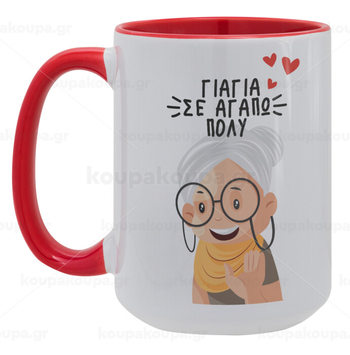 Γιαγιά σε αγαπώ πολύ!, Κούπα Mega 15oz, κεραμική Κόκκινη, 450ml