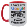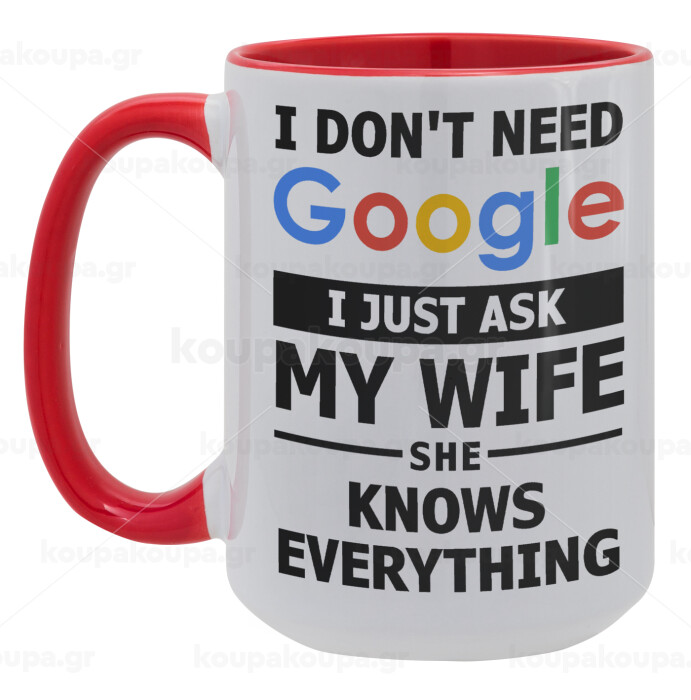 I don't need Google, just ask my WIFE, Κούπα Mega 15oz, κεραμική Κόκκινη, 450ml