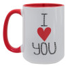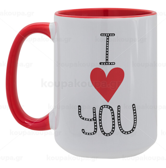 I Love You small dots, Κούπα Mega 15oz, κεραμική Κόκκινη, 450ml