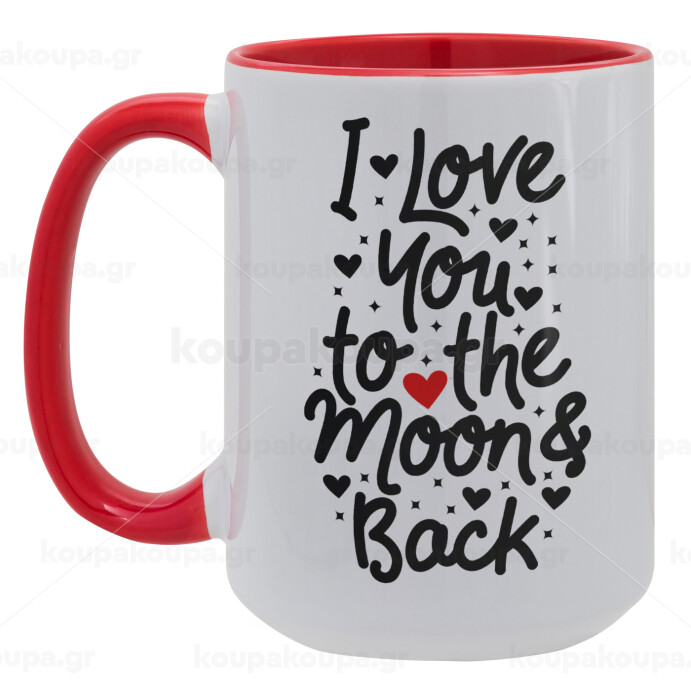 I love you to the moon and back with hearts, Κούπα Mega 15oz, κεραμική Κόκκινη, 450ml