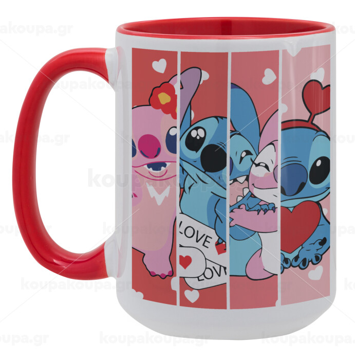 Lilo & Stitch Love, Κούπα Mega 15oz, κεραμική Κόκκινη, 450ml