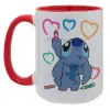 Lilo & Stitch painting, Κούπα Mega 15oz, κεραμική Κόκκινη, 450ml