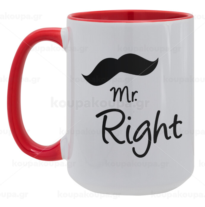 Mr right Mustache, Κούπα Mega 15oz, κεραμική Κόκκινη, 450ml