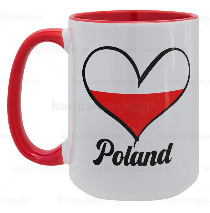 Poland flag, Κούπα Mega 15oz, κεραμική Κόκκινη, 450ml