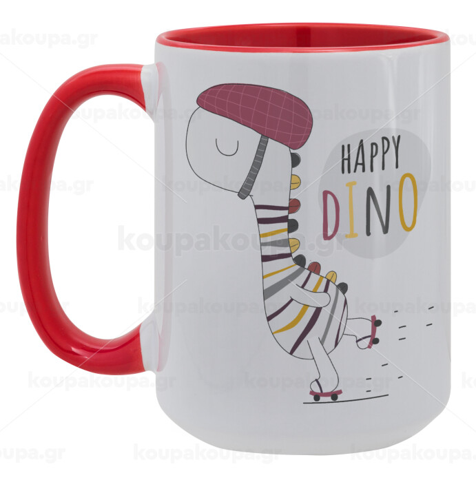 Happy Dino, Κούπα Mega 15oz, κεραμική Κόκκινη, 450ml