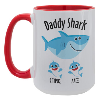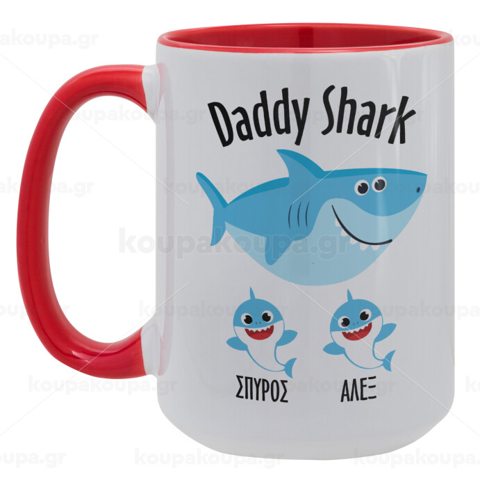 Daddy Shark (με ονόματα παιδικά), Κούπα Mega 15oz, κεραμική Κόκκινη, 450ml