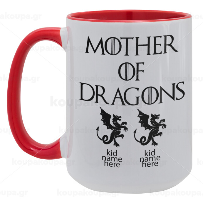 GOT, Mother of Dragons (με ονόματα παιδικά), Κούπα Mega 15oz, κεραμική Κόκκινη, 450ml