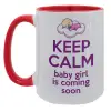 KEEP CALM baby girl is coming soon!!!, Κούπα Mega 15oz, κεραμική Κόκκινη, 450ml