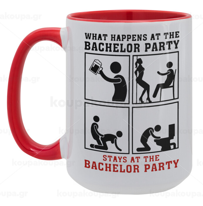 What happens at the bachelor party, stays at the bachelor party!, Κούπα Mega 15oz, κεραμική Κόκκινη, 450ml