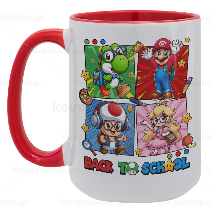 Back to the School Mario & Friends, Κούπα Mega 15oz, κεραμική Κόκκινη, 450ml