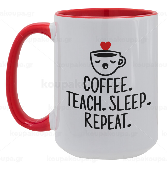Coffee Teach Sleep Repeat, Κούπα Mega 15oz, κεραμική Κόκκινη, 450ml