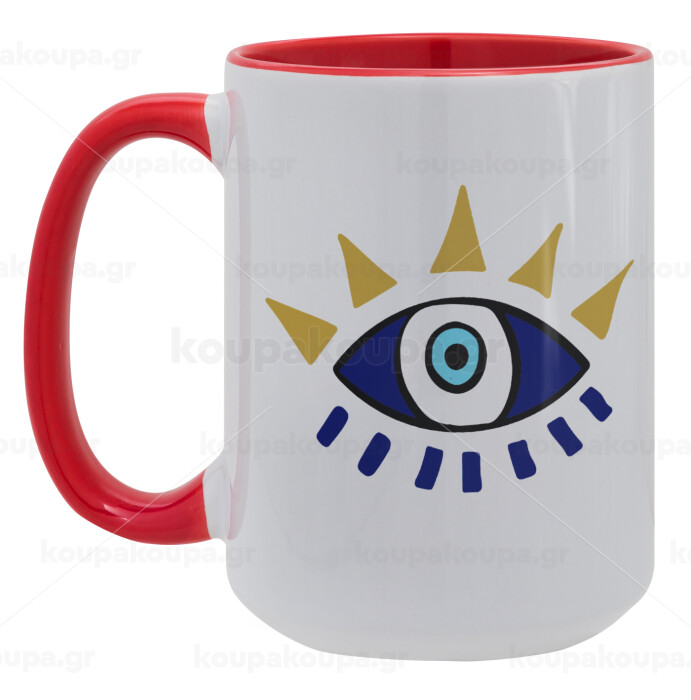 blue evil eye, Κούπα Mega 15oz, κεραμική Κόκκινη, 450ml