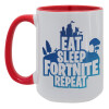 Eat Sleep Fortnite Repeat, Κούπα Mega 15oz, κεραμική Κόκκινη, 450ml