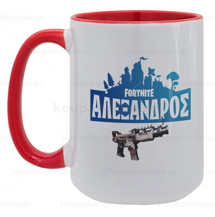 Fortnite with gun με το όνομα σου, Κούπα Mega 15oz, κεραμική Κόκκινη, 450ml