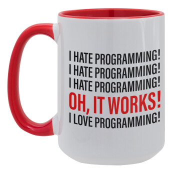 I hate programming!!!, Κούπα Mega 15oz, κεραμική Κόκκινη, 450ml