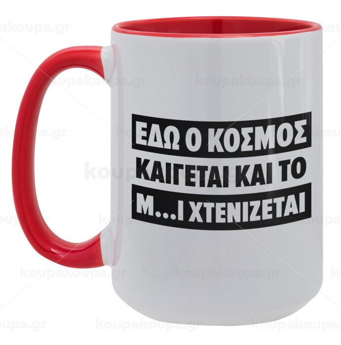Εδώ ο κόσμος καίγεται και το Μ....Ι χτενίζεται, Κούπα Mega 15oz, κεραμική Κόκκινη, 450ml