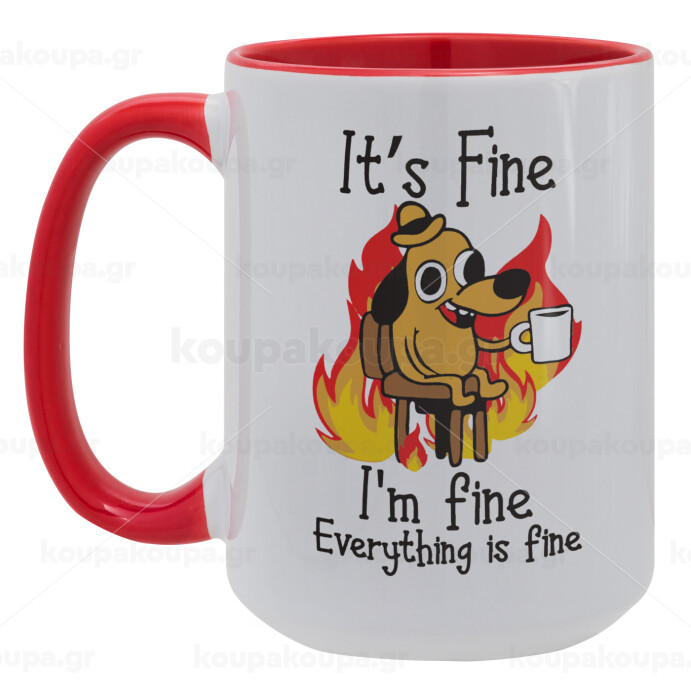 It's Fine I'm Fine Everything Is Fine, Κούπα Mega 15oz, κεραμική Κόκκινη, 450ml