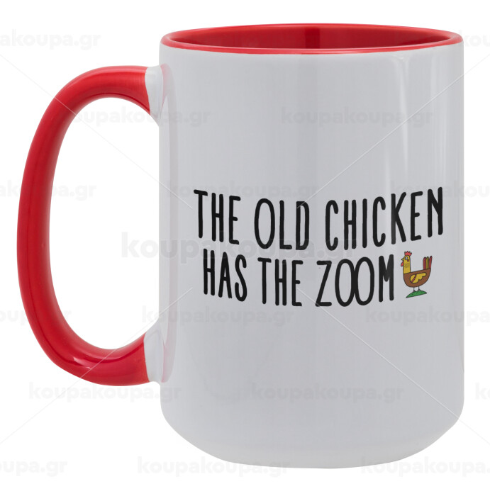 The old chicken has the zoom, Κούπα Mega 15oz, κεραμική Κόκκινη, 450ml