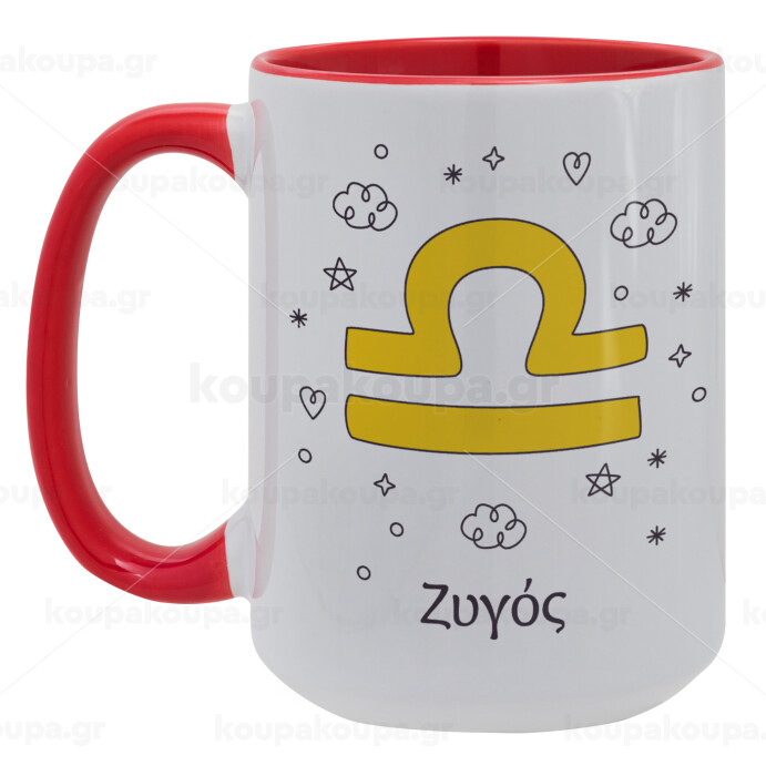 Ζώδια Ζυγός, Κούπα Mega 15oz, κεραμική Κόκκινη, 450ml