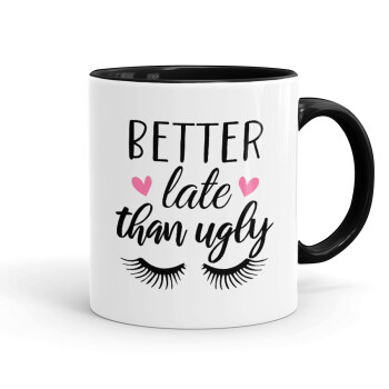 Better Late than ugly hearts, Mug colored black, ceramic, 330ml