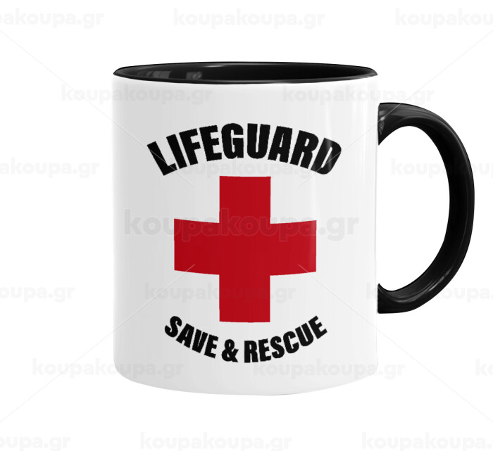 Lifeguard Save & Rescue, Mug colored black, ceramic, 330ml