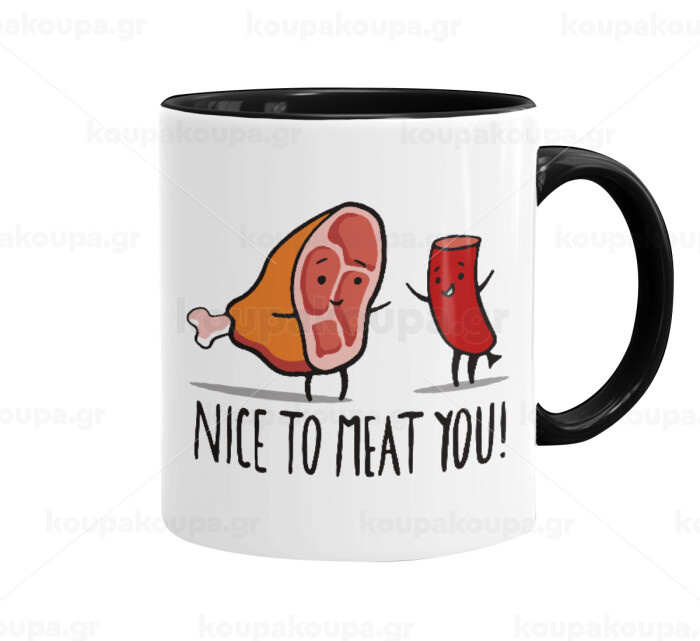 Nice to MEAT you, Mug colored black, ceramic, 330ml
