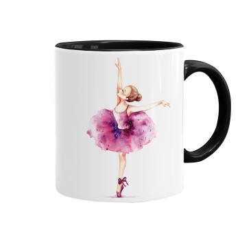Ballerina watercolor, Mug colored black, ceramic, 330ml