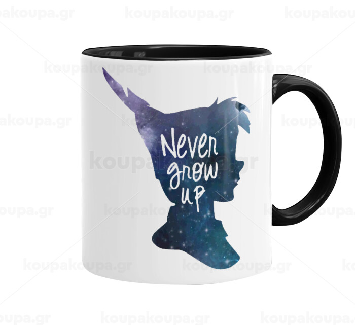Never Grow UP, Mug colored black, ceramic, 330ml
