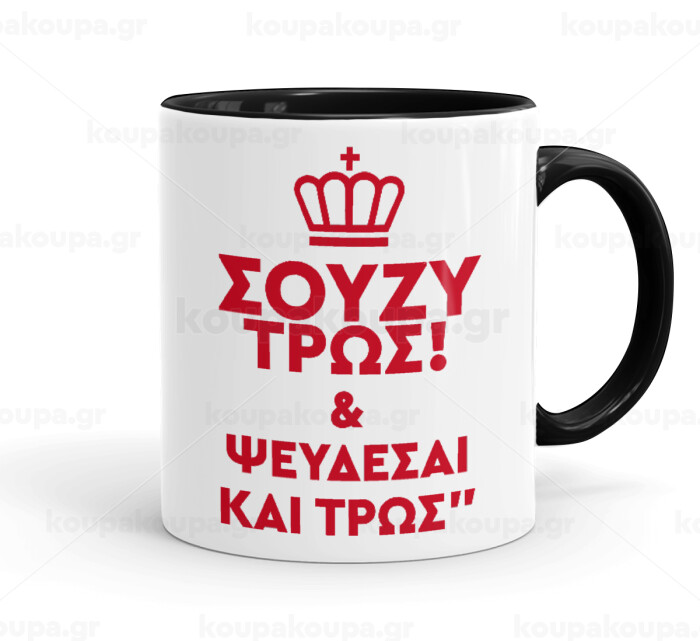 Σούζυ και ψεύδεσαι και τρως, Mug colored black, ceramic, 330ml