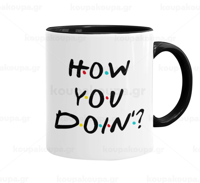 Friends How You Doin'?, Mug colored black, ceramic, 330ml