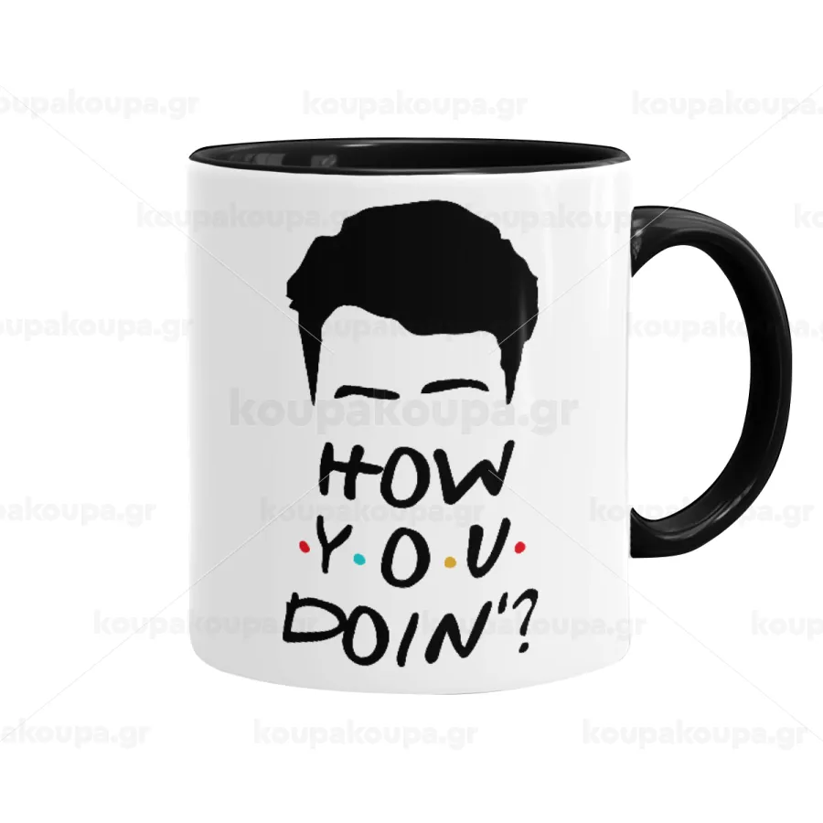 Friends how you doin?, Mug colored black, ceramic, 330ml