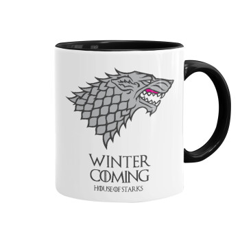 GOT House of Starks, winter coming, Mug colored black, ceramic, 330ml