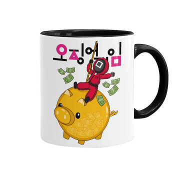 Squid game money pig, Mug colored black, ceramic, 330ml