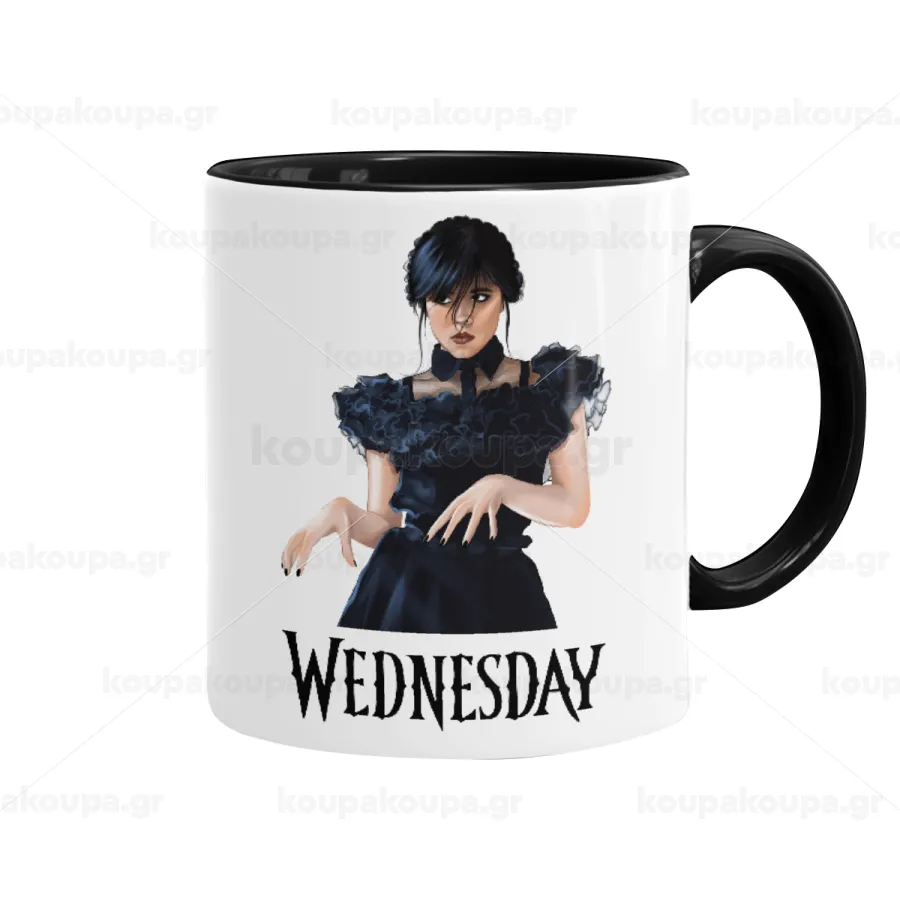 Wednesday Adams, dance with hands, Mug colored black, ceramic, 330ml