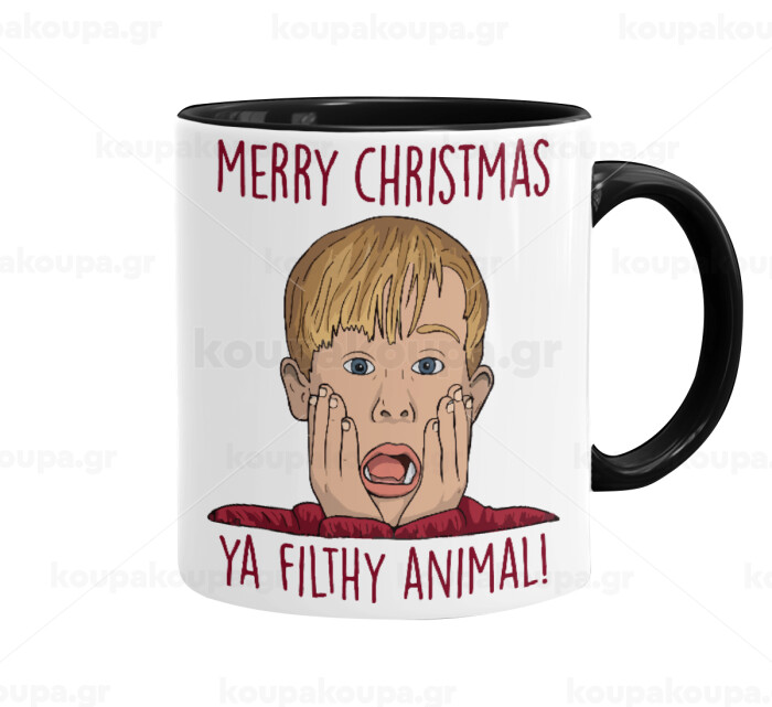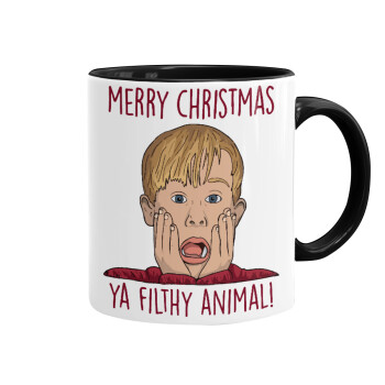 home alone, Merry Christmas ya filthy animal, Mug colored black, ceramic, 330ml