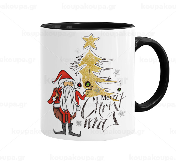 Santa Claus gold, Mug colored black, ceramic, 330ml