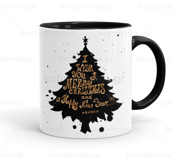 Tree, i wish you a merry christmas and a Happy New Year!!! xoxoxo, Mug colored black, ceramic, 330ml