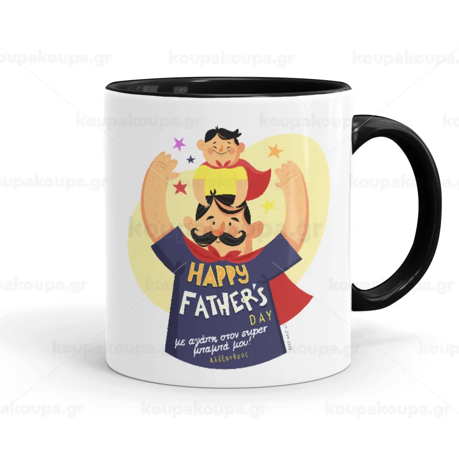 Happy Fathers Day με όνομα, Mug colored black, ceramic, 330ml